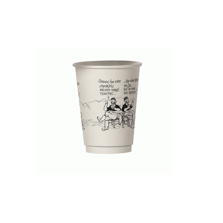Ποτήρι χάρτινο χωρητικότητας 8oz με ζωγραφιστό σχέδιο . Προσφέρεται μια χαλαρή στιγμή στον πελάτη με τη σειρά “μερακλής” σχεδιασμένα με χιούμορ για την καθημερινή του απόλαυση. Είναι κατασκευασμένα απο εξαιρετικής ποιότητας σκληρό χαρτί διπλού τοιχώματος ,για να αντέχει στην υψηλή θερμοκρασία των ροφημάτων αλλά και στην υγρασία όπως καφέ, milkshake, γρανίτες κ.ά.