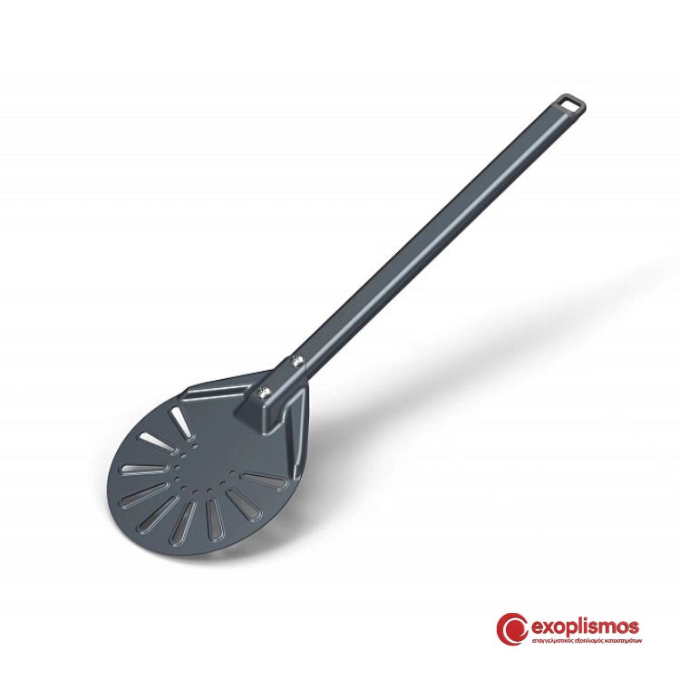 - Σπάτουλα περιστροφής πίτσας 66×17,8εκ. από αλουμίνιο. Η διάτρητη κεφαλή αποτρέπει τα κολλήματα και σας βοηθά να απαλλαγείτε από το περιττό αλεύρι, η ειδικά κατασκευασμένη επιφάνειά του, μειώνει πετυχαίνει απολαυστικά τραγανή κρούστα. Ιδανική για μαγείρεμα σε ξυλόφουρνο, φούρνο αερίου και ηλεκτρικό φούρνο.