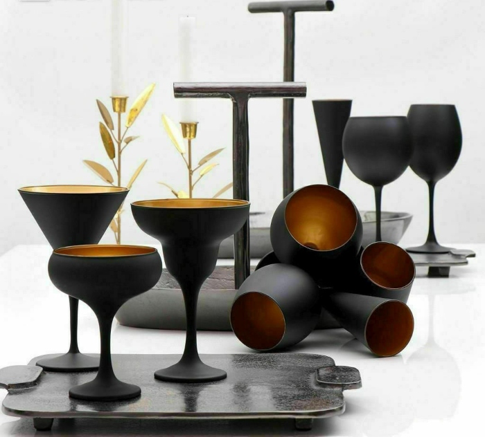 Ποτήρι κολωνάτο για μαρτίνι και κοκτέιλ με μοντέρνο κωνικό σχεδιασμό, σε μαύρο ματ χρώμα με εσωτερική χρυσή επένδυση. Η Σειρά Maya με τις διαφορετικές αποχρώσεις της και τα όμορφα σχέδια της, εντυπωσιάζει και κερδίζει τις εντυπώσεις! Απολαύστε το ποτό σας και σερβίρετε τους πελάτες και τους καλεσμένους σας, με καλή αισθητική, κομψότητα και στυλ! Στην Exoplismos Ltd σας προσφέρουμε κορυφαία brand, ιδανικά για επαγγελματίες αλλά και οικιακή χρήση! Απαιτούμε πάντα μοντέρνο σχεδιασμό, vintage σχέδια, κλασική εμφάνιση και μεγάλη γκάμα προϊόντων, που να περιλαμβάνουν όλα τα είδη σερβιρίσματος. Τα ποιοτικά υλικά που διαθέτουμε, ταιριάζουν στον σύγχρονο τρόπο ζωής και φέρνουν απόλυτη πολυτέλεια στις μικρές καθημερινές σας απολαύσεις. Στον χώρο μας φιλοξενούμε κομμάτια που θα απογειώσουν και θα αναδείξουν τις δημιουργίες και τις υπηρεσίες σας, χαρίζοντας μια γοητευτική ατμόσφαιρα στο χώρο σας!